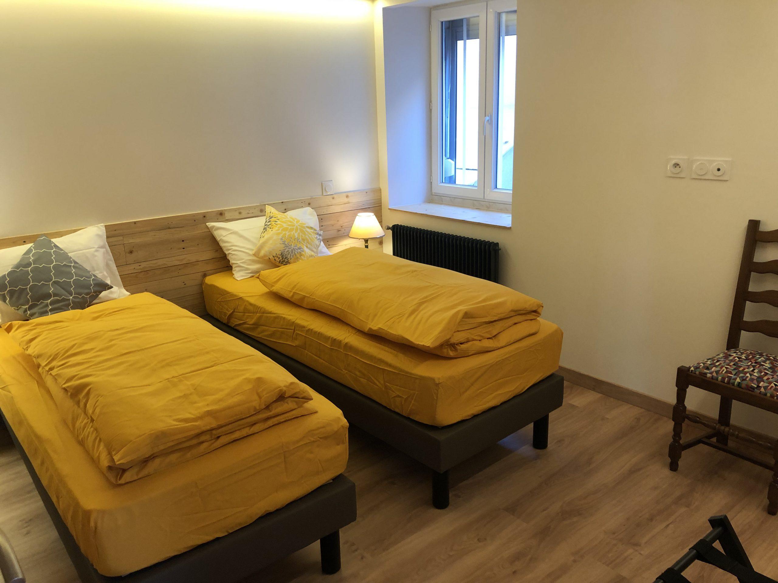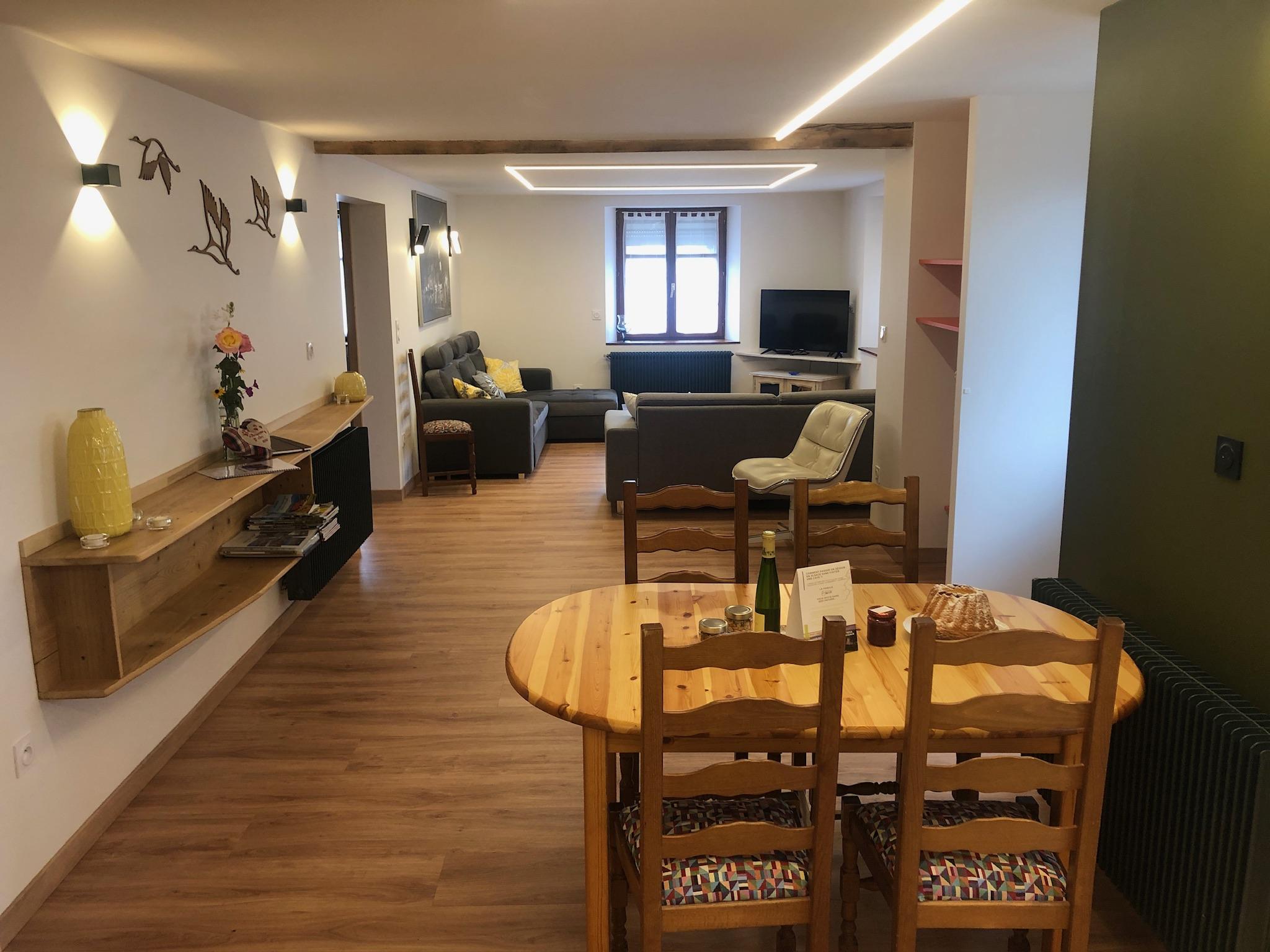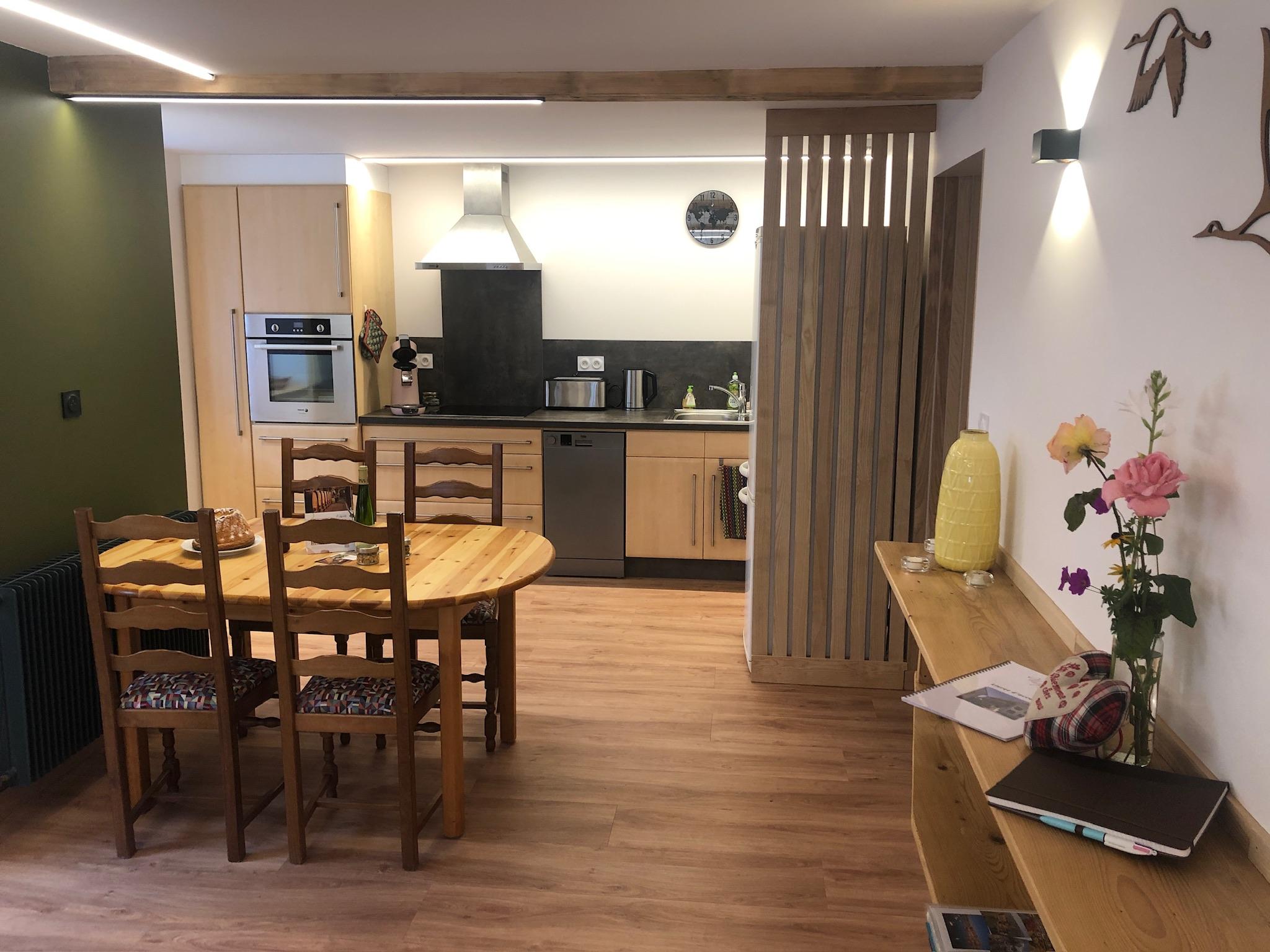 Le gite aloyse se situe au rez-de chaussée. Ses épais murs anciens, fait de moellons de grès de 60 cm de larges, en font un appartement authentique et très chaleureux.