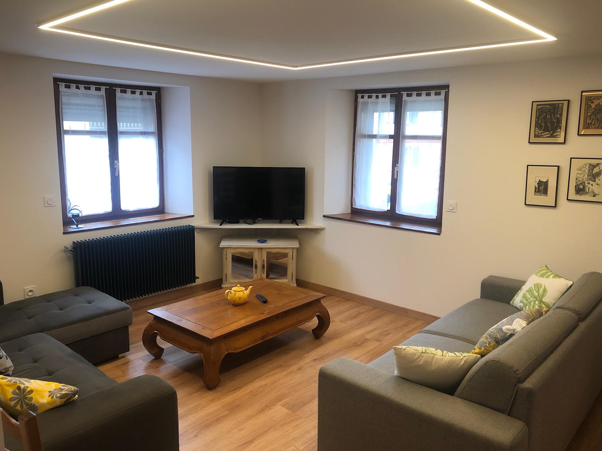- Coin salon avec un canapé convertibles 3 places, une banquette 2 places, une TV avec connexion à Netflix